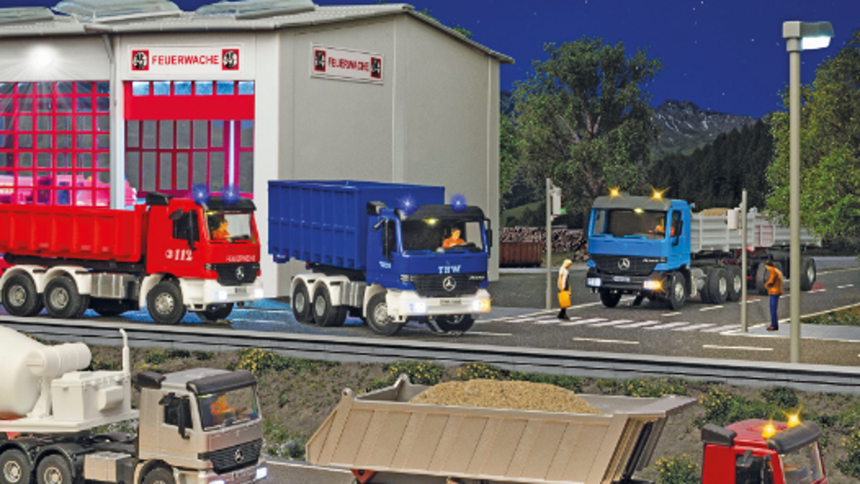 Auf Eisenbahnplatten gehört es längst dazu: Die Züge fahren – scheinbar ohne Steuerung – eigenständig, halten an Bahnhöfen oder Zugübergängen, um dann ganz autonom ihre Reise fortzusetzen. Dieses Vorbild hatte Viesmann Modelltechnik bei der Entwicklung von CarMotion, womit nun auch LKWs fast eigenständig auf Reisen gehen.